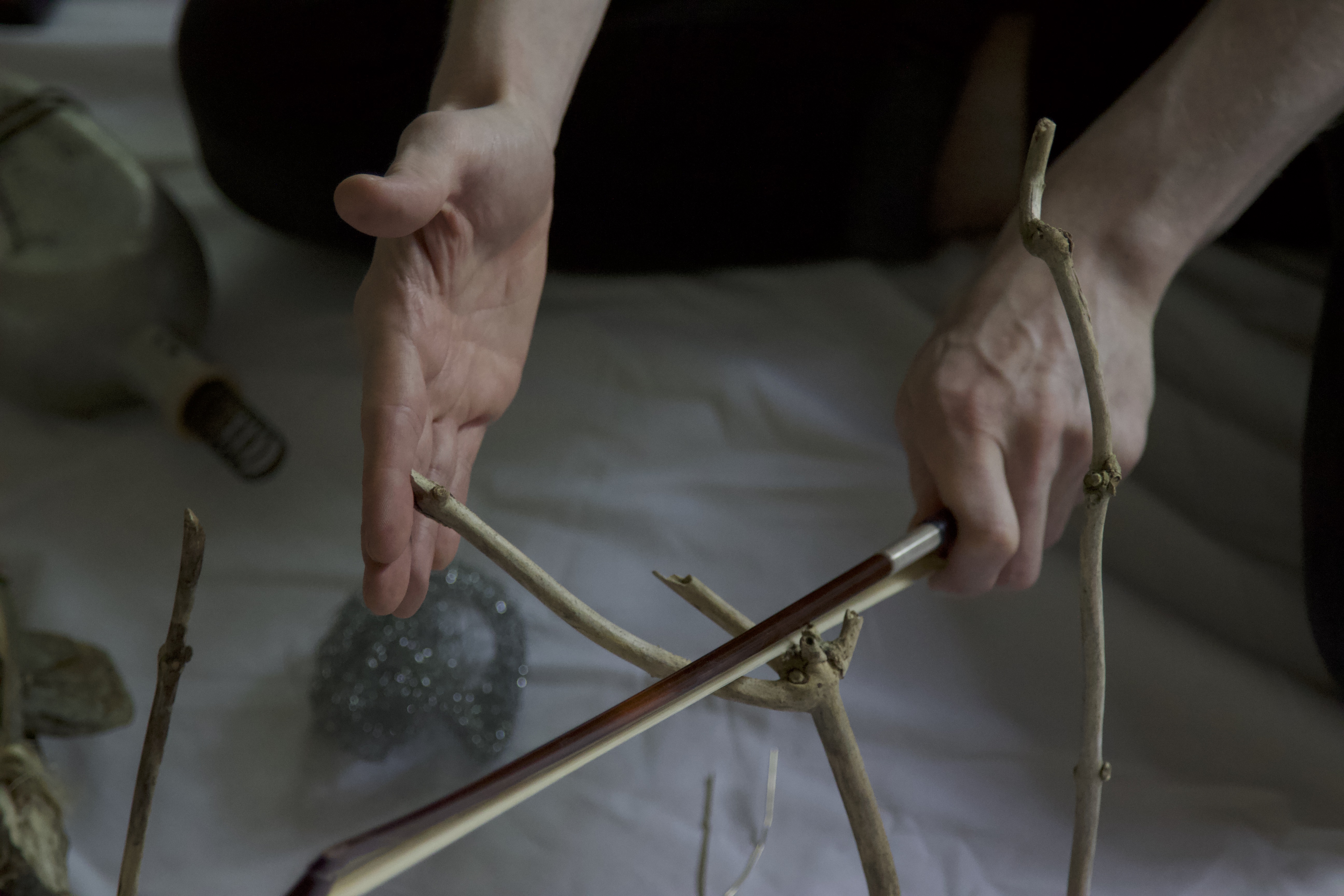 In improvised live performances, Crean engages directly with foraged natural materials, using experimental techniques, contact microphones, and subtle audio processing to balance human intention with the agency of the natural world. The result is co-created—an evolving meeting point between human and non-human forces.