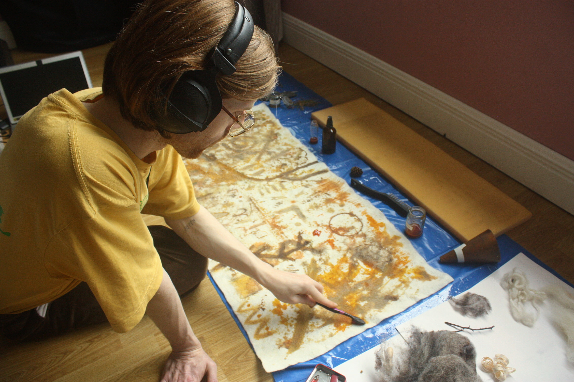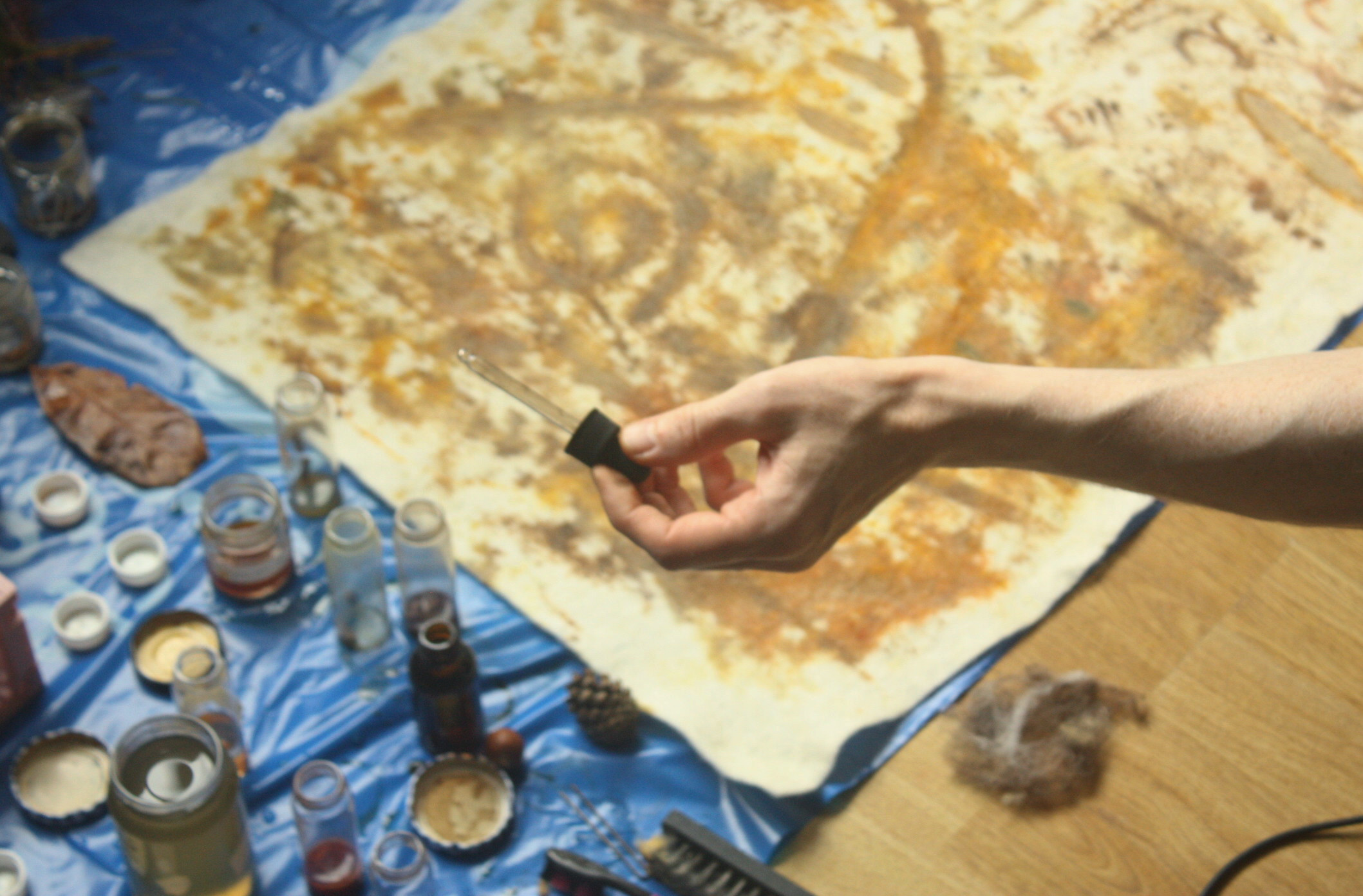 While attentive to the original soundscape, the approach embraces environmental contingency—weather, animal movement, insect activity, and seasonal changes all leave traces in the recorded audio, influencing the score as it unfolds in the studio. Pigments are foraged from the same sites where the recordings are made, embedding local materials, natural cycles, and cultural histories into the work.