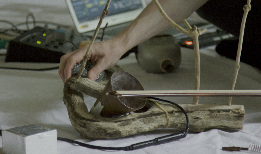 This work explores natural environments and materials through instrument building, field recording, aural scoring (inductive performance environment), and free improvisation. Performances combine found objects, DIY instruments, electronic elements, and contact microphones to reveal subtle textures and hidden resonances within materials. Deep listening practices and responsive performance techniques guide the process, with the performers’ close relationships shaping how they hear, react, and co-create in real time.